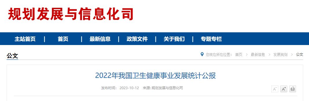 点击阅读原文获取《2022年我国卫生健康事业发展统计公报》原文