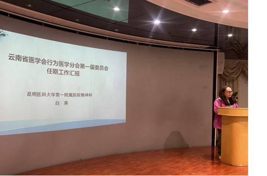 会议首先由行为分会第一届委员会主任委员白燕主任作任期工作报告,全面回顾过去几年分会的工作,有收获也有不足。在学术研究方面,组织了多次省级行为医学学术会议,鼓励会员积极开展科研项目,部分研究成果在国内相关领域产生一定影响;在学术交流上,与国内其他省市行为医学分会保持密切联系,邀请知名专家来滇讲学,同时选派会员参加国内高水平学术会议;在科普宣传与社会服务中,开展了一系列行为医学科普活动,走进社区、学校、企事业单位,提高公众对行为医学的认知度,为大众心理健康和行为健康提供指导和帮助;在组织建设方面,不断完善分会规章制度,吸纳优秀专业人才入会,壮大分会队伍 。